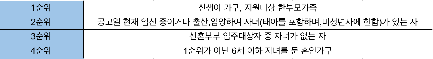 *신생아가구 : 입주자 모집공고일로부터 최근 2년이내 출산한 자녀 (태아,2년이내 출생한 입양자 포함)가 있는 가구