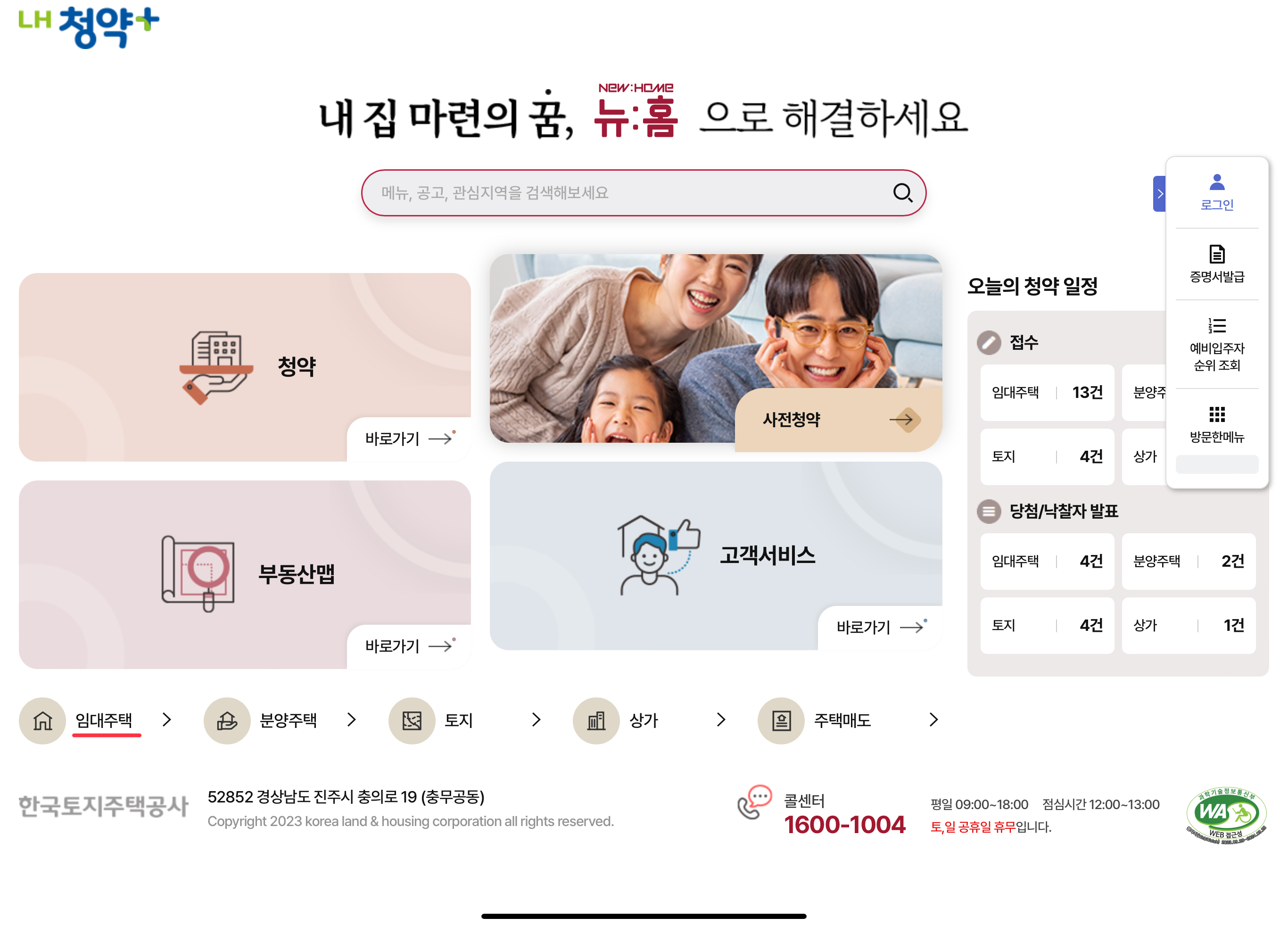 위처럼 홈페이지가 나오면 임대주택을 클릭!
